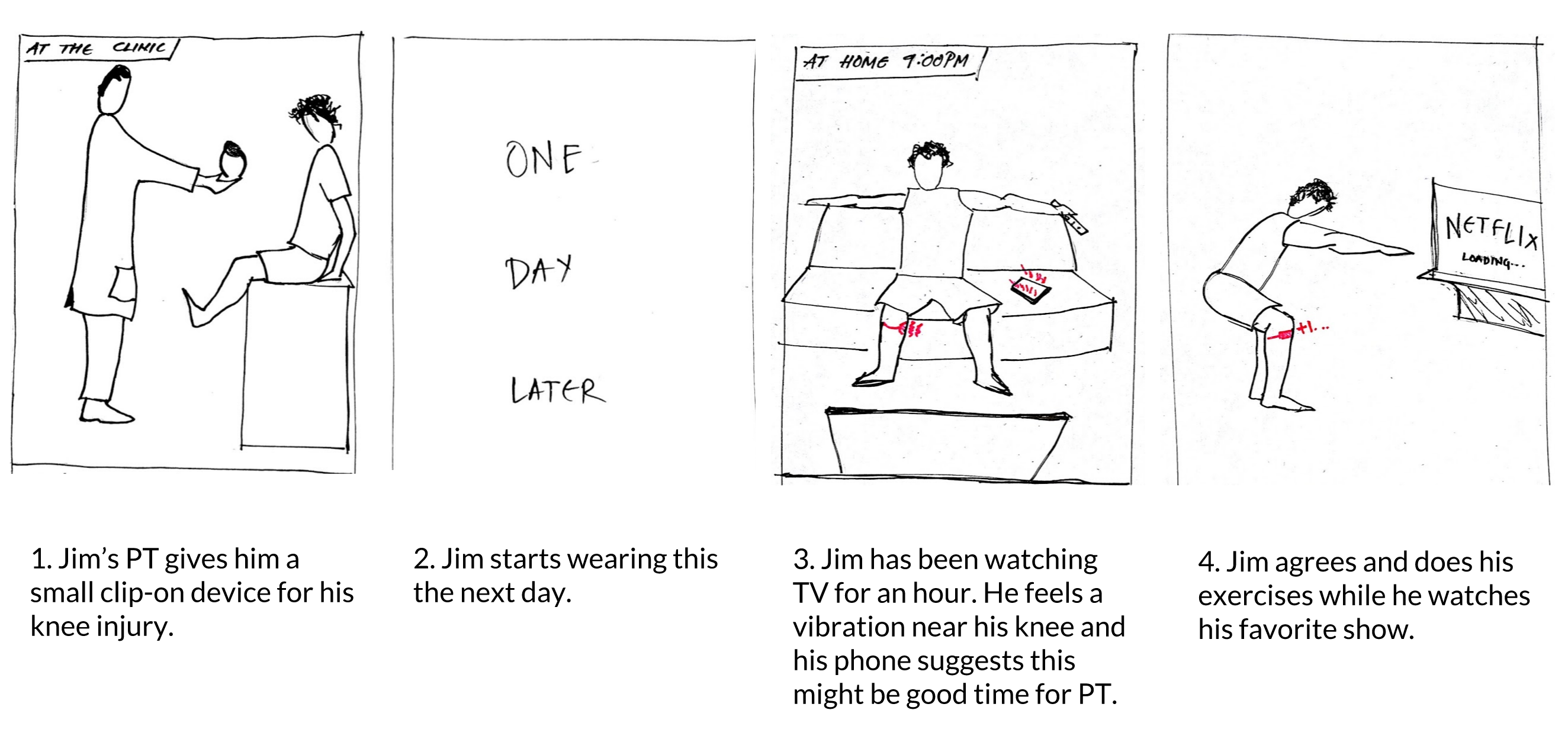 In the medical field, patient adherence is widely problematic. Physical therapy is no exception. Patients struggle to complete their home exercise programs. In turn, non-adherence slows a patient’s recovery, increases expenditures for medical care and may cause patients to doubt the value of the physical therapy practice as a whole. With this in mind, our team set to work empowering patients to take control of their recovery and get back on track. We framed our exploration using the following design question: